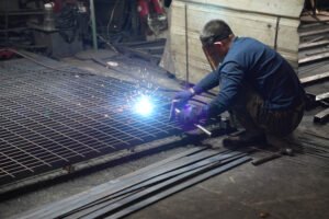 Steel grating is typically manufactured by welding cross bars at regular intervals onto bearing bars, forming a grid pattern of square or rectangular openings.